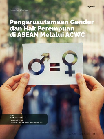 Pojok PSA Sumber Foto: 123rf_Venue Pengarusutamaan Gender dan Hak Perempuan di ASEAN Melalui ACWC Oleh: Yulida Nuraini Santoso Managing Director Pusat Studi ASEAN, Universitas Gadjah Mada Masyarakat ASEAN Edisi 29 Des 2021 35